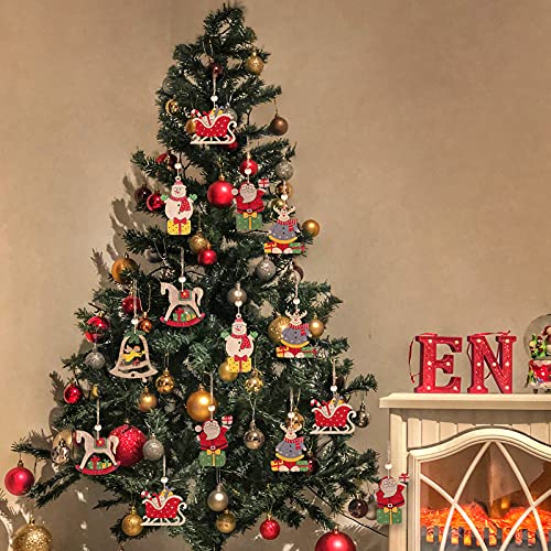【Forme diverse】: questo set di ciondoli per decorazioni natalizie in legno include campane d’angelo, Babbo Natale, slitta, cavallo di legno, pupazzo di neve e alci. Diversi colori e forme possono soddisfare pienamente le tue esigenze di decorazione dell’albero di Natale.