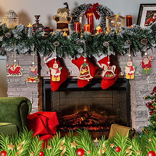 【Artigianato squisito】: Gli ornamenti in legno da appendere di Natale hanno una varietà di forme carine e ogni ornamento in legno è intagliato con un piccolo foro per abbinare la corda e le perline. Puoi appenderli facilmente su alberi di Natale, finestre e caminetti come buone decorazioni e oggetti artigianali.