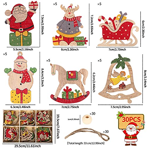 30 Pz Ciondoli in legno di Natale,albero di natale ciondolo di legno Decorazioni Albero di Natale Ornamenti Legno per Appese Decorazioni Natalizie Artigianato con scatola di legno