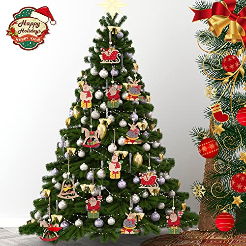 【Materiali in legno naturale】: I ciondoli in legno dell’albero di Natale sono realizzati a mano con legno naturale di alta qualità, che è forte e durevole e non sbiadisce. Ogni pezzo di legno è lucidato e la superficie è liscia, priva di sbavature e abbastanza sicura per l’uso.