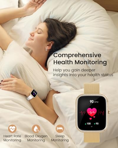 【Cura Esclusiva】Lo smart watch donna con sensori integrati ad alta precisione combina prestazioni eccellenti con uno stile unico. Monitora accuratamente la frequenza cardiaca, l’ossigeno nel sangue e il sonno, percepisce i sottili cambiamenti del corpo e fornisce dati professionali di riferimento per una vita sana. Può anche monitorare il periodo fisiologico, il periodo di ovulazione e la gravidanza, e con l’allenamento della respirazione aiuta a rilassarsi fisicamente e mentalment