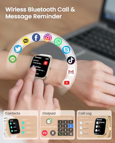 【Comoda Comunicazione】Lo smartwatch donna con chiamate è dotato di altoparlante e microfono integrati, dopo la connessione Bluetooth 5.3 è possibile effettuare/ricevere chiamate in modo stabile e chiaro e chattare senza ostacoli. Può anche ricevere messaggi di testo e notifiche sui social media da Facebook, WhatsApp, Instagram, Twitter, ecc., mantenendoti strettamente connesso con il mondo e non perdendo mai nessuna informazione importante