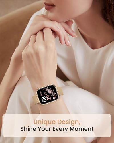 【Scintillante al Polso】BANLVS smartwatch donna si basano sullo stile minimalista senza tempo e incorporano un piccolo ingegno squisito. La cornice di diamanti è elegante e chic e gli strass sul quadrante brillano come stelle. Ogni diamante è stato accuratamente selezionato e incastonato per mostrare l’elegante bellezza del polso. Viene fornito con un delicato cinturino in acciaio e un morbido cinturino in silicone, elegante e leggero. Il regalo perfetto per la vostra persona preferita