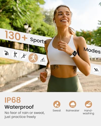 【Compagno Sportivo】L’orologio smartwatch donna supporta oltre 130 modalità sportive come yoga, danza, corsa, sci, ecc., fornisce dati di allenamento professionali (calorie, distanza, passi), registra ogni goccia di sudore e ogni progresso e ti aiuta a modellare il tuo forma del corpo ideale. Con il grado di impermeabilità IP68, non avrai paura del vento, della pioggia e del sudore