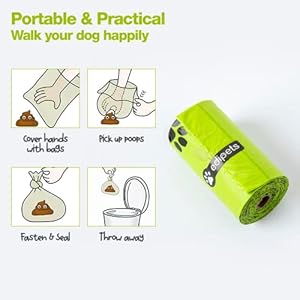 AMICHEVOLE PER L’AMBIENTE: I nostri sacchetti per i rifiuti del cane sono fatti con una grande maggioranza di amido di mais, riducendo significativamente l’impatto ambientale. Non solo i sacchetti dei rifiuti sono biodegradabili, ma anche il rotolo centrale è fatto di cartone riciclato.