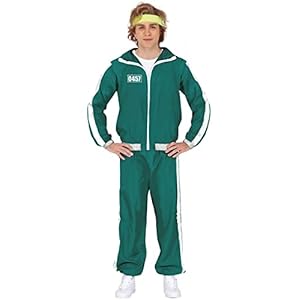 Questo costume verde da partecipante numero 457 è da uomo. Include una giacca e pantaloni. La giacca stampata ha il numero “0457”. Il set è di colore verde e include tratti bianchi sui pantaloni, così come sulla giacca. La giacca si chiude con una semplice cerniera. Partecipa al famoso gioco coreano e diventa un attore indispensabile alla tua festa in costume per Carnevale o Capodanno!