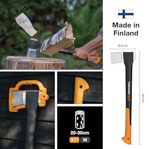 Contenuto: 1x Fiskars Ascia da spacco X17-M, Protezione per lama inclusa, Lunghezza: 60 cm, Peso: 1,53 kg, Materiale: Acciaio di qualità/Plastica rinforzata con fibra di vetro, Colore: Nero/Arancione, 1015641