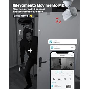 🏃【Visione Notturna Chiara & Rilevamento del Movimento PIR】: Gli infrarossi consentono di vedere chiaramente anche in condizioni di scarsa illuminazione. Quando viene rilevato un movimento arriva quasi istantaneamente nel telefono una notifica, con allegata una clip di ciò che è stato registrato. La sensibilità di rilevamento di 1-10 livelli è regolabile, è possibile impostare l’ora dell’allarme e personalizzare le aree di allarme di movimento per ridurre i falsi allarmi.
