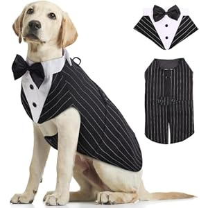 Design Speciale: Papillon e abito da vestito cane matrimonio in un’unica soluzione, utilizzabili separatamente. Il vostro cane può avere sia una smoking bandana che un vestito! Il papillon e i bottoni decorativi aggiungono eleganza e stile al vostro cane.