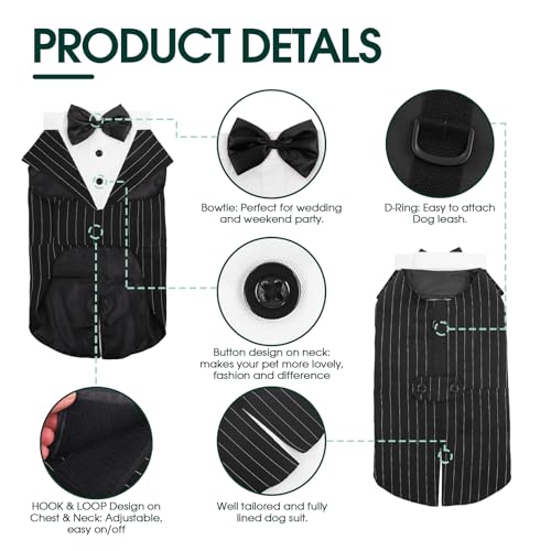 Facile da Indossare: il set vestito elegante per cani ha un design in velcro sul collo e sul petto e un design, garantendo una vestibilità comoda e senza fastidi per il tuo cane. Il design con anello a D sul retro consente di collegare facilmente il guinzaglio per una maggiore praticità durante le passeggiate.