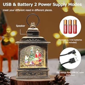 ✨[Alimentato tramite USB e a batteria] Il pacchetto include un cavo di ricarica USB che consente di utilizzare la sfera di neve di Natale senza batteria. Puoi anche utilizzare 3 batterie AA (non incluse), posizionarle ovunque desideri decorare interni o esterni. È molto comodo e facile da usare.