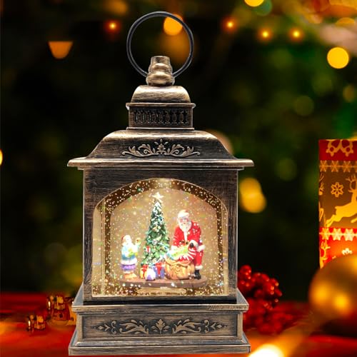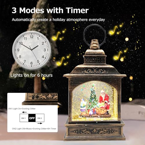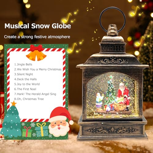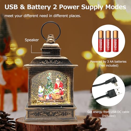 Marsyu Globi di Neve Musicali di Natale, Lanterne di Natale Scintillanti Rotanti Alimentate a Batteria USB e 3AA con Timer, Decorazioni Natalizie Vintage Regali per la Casa (Scena di Babbo Natale)