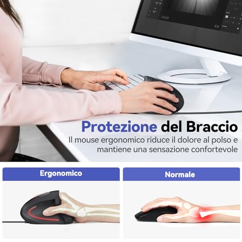 PROTEZIONE DEL BRACCIO: Il mouse verticale ergonomico consente di regolare il braccio e il polso in una posizione comoda, riducendo la tensione muscolare del braccio per movimenti più confortevoli e meno stress