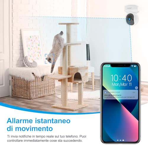 【AUDIO BIDIREZIONALE & COMPATIBILITÀ ALEXA】Microfono e altoparlante integrati ti consentono di goderti una tranquilla chiacchierata con i tuoi cari mentre stai fuori casa. Funziona con Alexa e puoi fare mostrare l’ingresso, stanza dei bambini o qualsiasi posti controllati dalla vidocamera sorveglianza interno wifi.